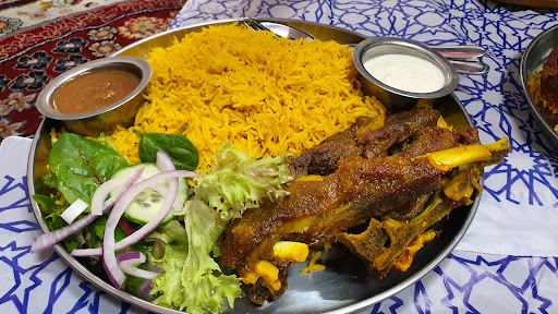 Its a nice place with the. Seating has a few tables and a on floor traditional seating. Degust good lamb shanks beef and chicken and rice at this restaurant.